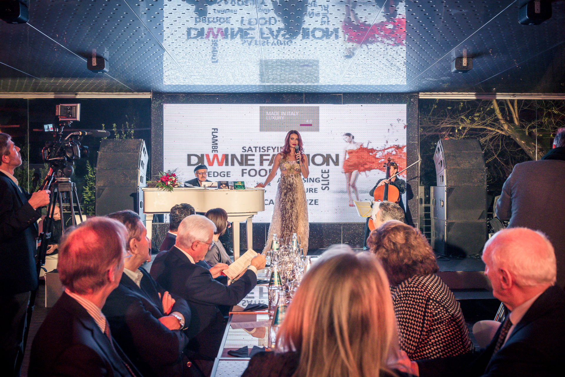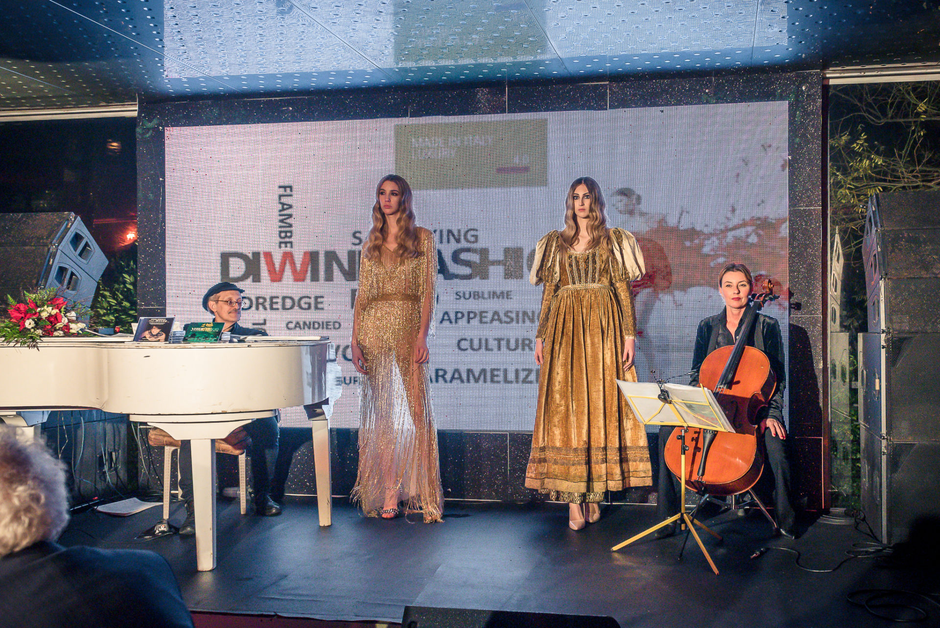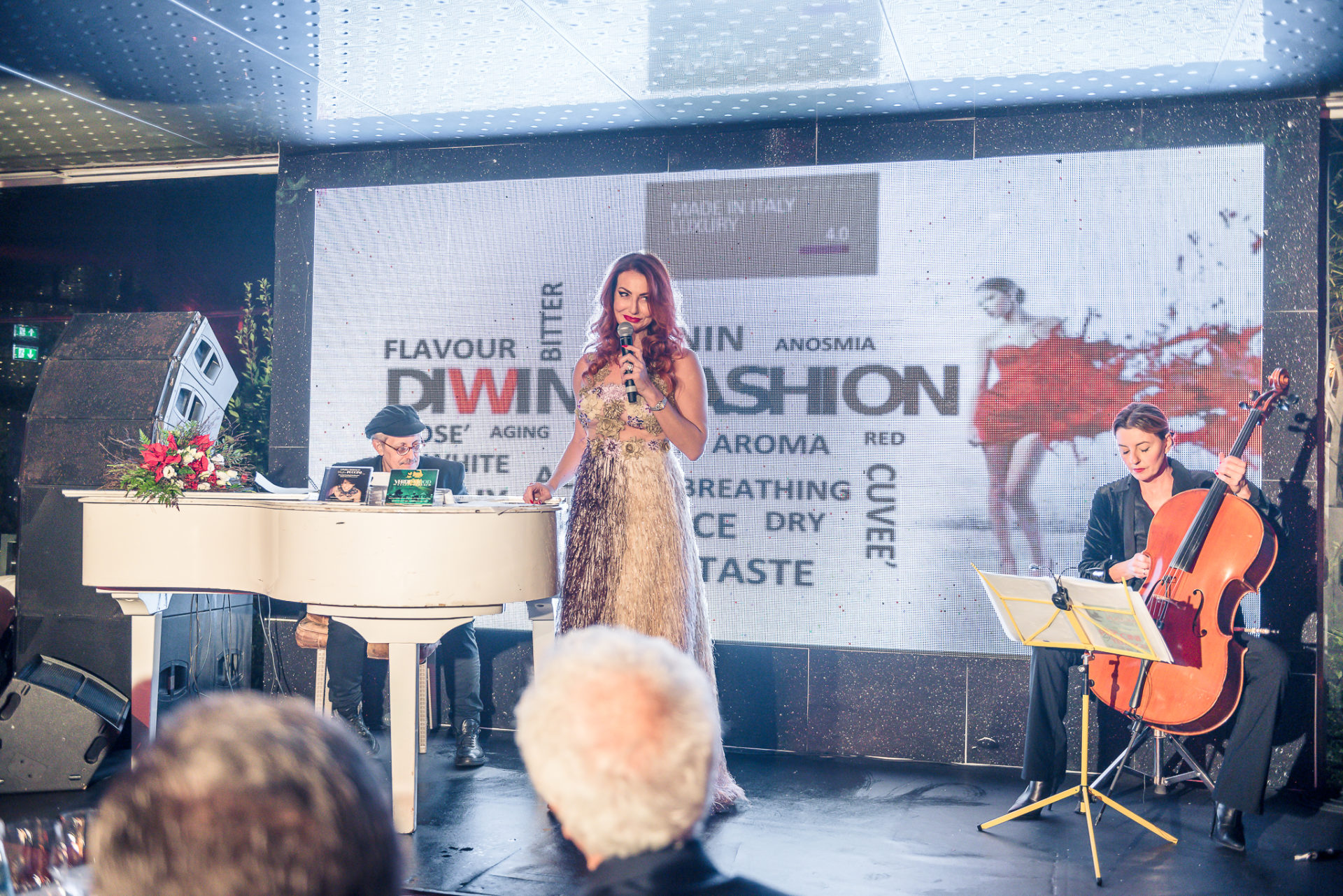 “Il rosso e il giallo sono i colori più usati nei costumi e sui palcoscenici del melodramma – commenta Sergio Grasso – Merito del loro essere messaggeri di emozioni che evocano l’amore, la passione, il sangue, il lusso, il potere e la ricchezza. Sono anche i colori con cui Verdi e Puccini – sublimi compositori ma anche impenitenti e raffinati gourmet – colmavano i loro calici e brindavano alla meritata fortuna delle loro opere. Tuttavia il colore non è l’unico legame tra l’opera lirica e il piacere della tavola, entrambi sublimi manifestazioni di creatività e buongusto. Tra arie da opere in chiave jazz e grandi vini laziali, haute couture e alta cucina, intriganti profumi e “gustose” divagazioni sui due compositori, DIWINE FASHION vuole celebrare le sublimi manifestazioni del “buongusto” italiano con un format originale, dinamico e divertente: un prezioso strumento di promozione all’estero del più raffinato e suadente Made in Italy.”