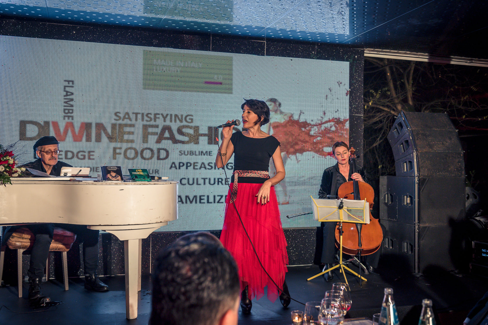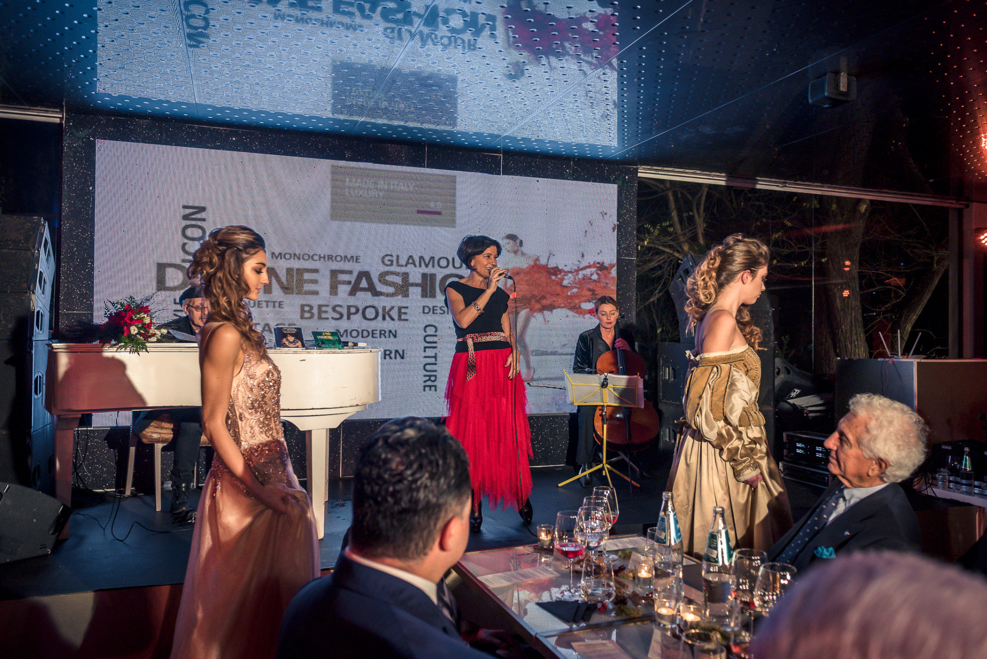 L’abile regia di Valeria Mangani ha acceso i riflettori sulle eccellenze made in Lazio con un percorso sensoriale in un alternarsi di luci, colori, suoni e tableau vivant di modelle con gli abiti di Gai Mattiolo indossati nell’ultimo film di Sorrentino, oltre che della sartoria teatrale CostumEpoque. A stimolare il gusto, i piatti e i vini del territorio delle Cantine Coletti Conti (Anagni, Frosinone), Stefanoni (Montefiascone, Viterbo), Casale del Giglio (Agro Pontino, Latina) e Azienda Agricola San Lazzaro (Marta, Viterbo) che custodiscono tante storie sapientemente illustrate, per l’occasione, dall’antropologo del gusto Sergio Grasso. Il Laboratorio Olfattivo pervaderà la sala di essenza al mosto d’uva fragola, per stimolare tutti i 5 sensi. Il tutto in un’atmosfera resa ancora più suggestiva da contaminazioni musicali con la vocalist di fama internazionale Cinzia Tedesco che ha cantato, accompagnata da Stefano Sabatini al piano e da Giovanna Famulari al violoncello, arie d’opera verdiane e pucciniane riproposte in chiave Jazz e tratte da Verdi’s Mood e da Mister Puccini, prodotti e distribuiti da Sony in tutto il mondo.